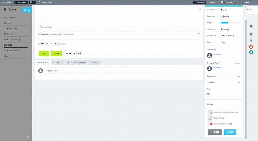 Для дизайнерів, директора, менеджера і екстранет-користувача все може бути показано в окремій папці з завантаженими файлами, включаючи додаткові документи по проектам. Її можна знайти в окремому вікні з розподілом на завдання, в рамках якої вони були прикріплені.