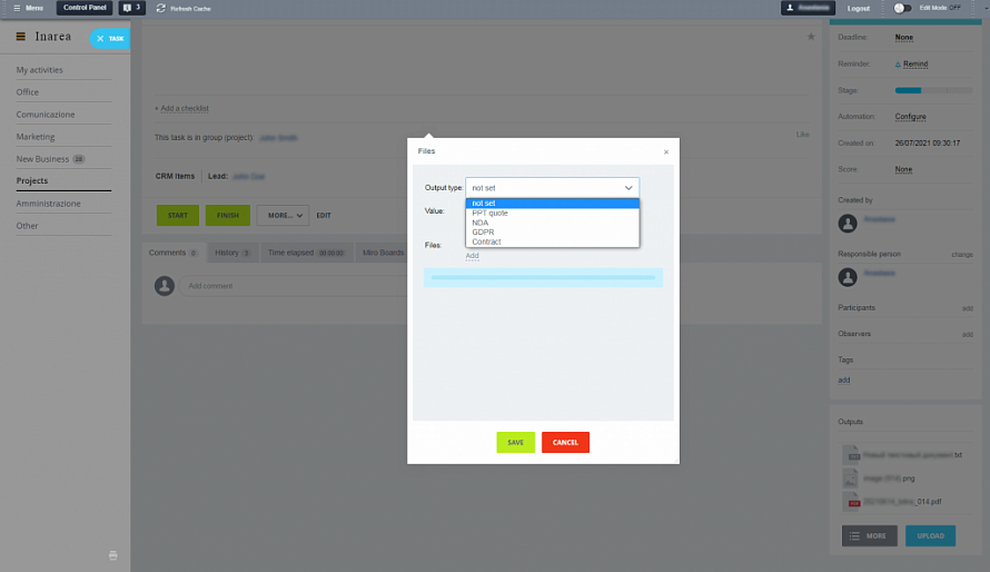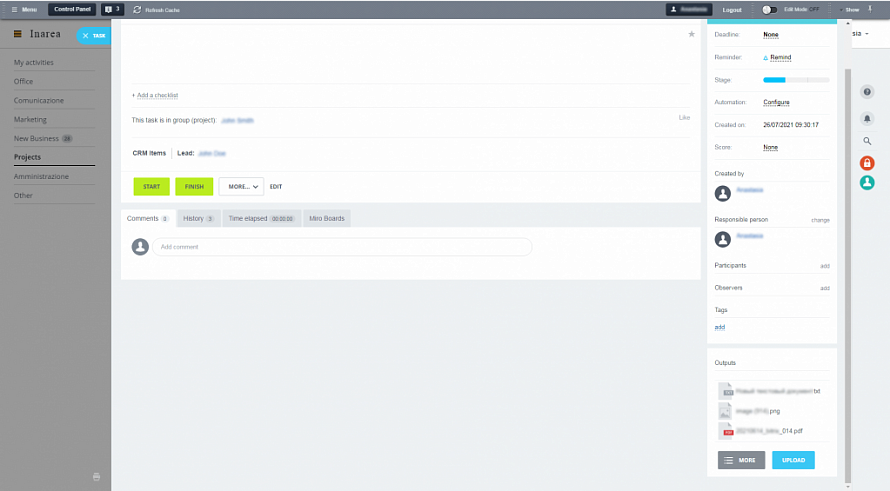 Перед фахівцями Авіві стояло завдання розробити функціонал для контролю процесу виконання завдань з боку керівника і замовника. У завдання входив особливий пункт щодо доповнення системи можливістю завантажувати файли, які є кінцевим продуктом, безпосередньо в Завдання Бітрікс24, а також сортувати завантажені файли за категоріями. Варіанти прикріплювати файли в опис завдання або в коментарі - не влаштовували клієнта.
